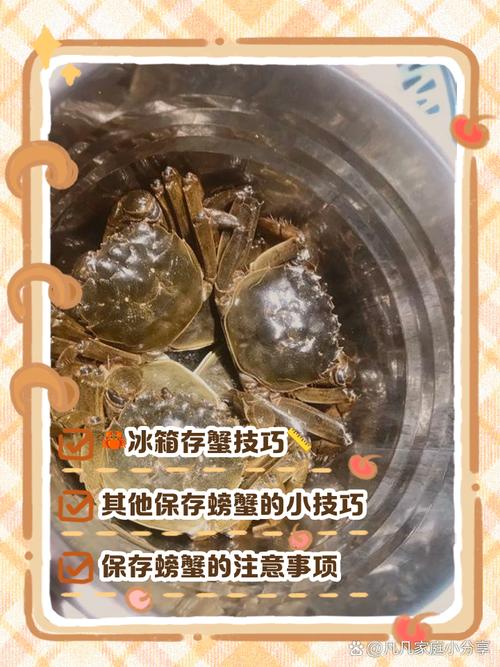阴凉保存:螃蟹应存放在阴凉通风的地方,避免阳光直射或高温环境,以防快速腐败。可以将其放在冰箱中,但温度不宜过低,比较好控制在10『1』5摄氏度之间。 去头保存:如果希望延长螃蟹的保存期,可以尝试去头的方法。用刀切除螃蟹的头部,只保留身体和大钳,这样可以在同等条件下延长1『2』天的保存期。