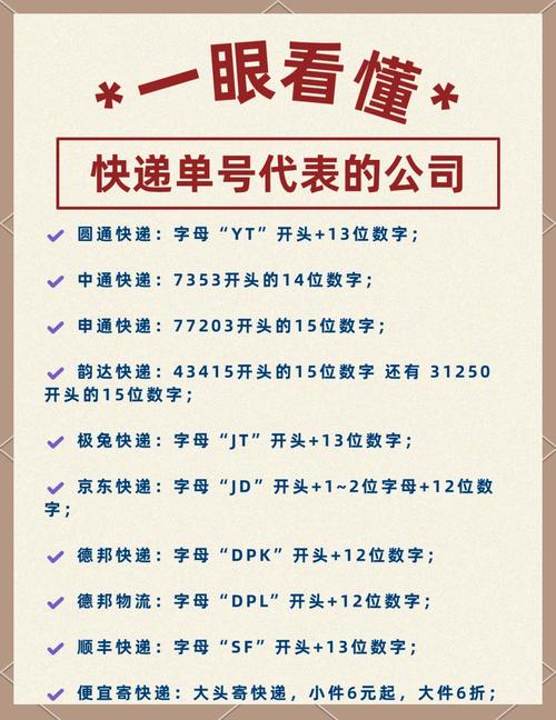 〖Four〗、开头的快递单号通常属于顺丰速运。解释: 快递单号识别:快递单号一般是由字母和数字组成的一串代码,开头的数字通常代表不同的快递公司。在这个情境下,数字“4”开头的快递单号一般是用来标识顺丰速运的快递件。