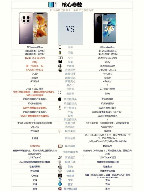 〖One〗、屏幕尺寸:Mate50的屏幕尺寸为7英寸,比Mate40稍大,为用户提供了更广阔的视野。综上所述,华为Mate40和Mate50各有千秋,用户在选取时应根据个人实际需求和预算来决定哪款更适合自己。