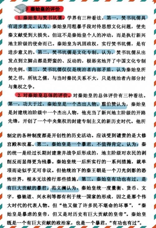 〖Six〗、评价一个历史人物,必须做到客观、公正,这是对待历史人物的正确态度。像秦始皇这样一位影响巨大的历史人物,对中国有许许多多的开创,对今后中国历史有很大的影响;同时秦始皇的许多作为,也为后人所抨击,后世对他的评价也褒贬不一,众说纷纭。