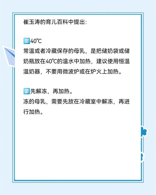 〖Five〗、母乳加热到37~40℃较为合适,具体原因及操作要点如下:合适温度的科学依据母乳加热至37~40℃能最大程度保留其营养活性。此温度接近人体体温,可避免低温导致免疫活性物质(如乳铁蛋白、溶菌酶)活性降低,减少对婴儿的保护作用;同时防止高温(如超过50℃)破坏脂肪、蛋白质等营养成分,造成营养流失。