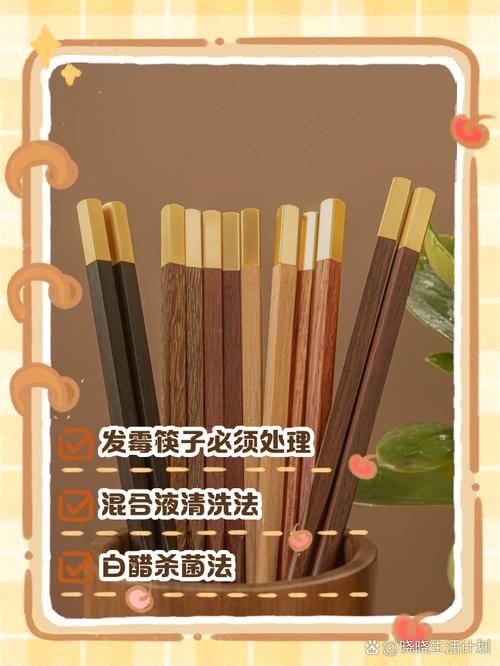 〖Four〗、筷子发黑后处理的核心方法是:根据材质选取清洁方式并及时更换。竹木筷子发黑通常由霉斑或氧化导致,需重点杀菌处理。不锈钢或塑料筷子若出现黑斑,可能与材质腐蚀有关,可用酸性物质清洁。材质适配处理步骤木筷或竹筷轻微发黑,可放入沸水煮15分钟,加入两勺白醋或小苏打增强去污效果。