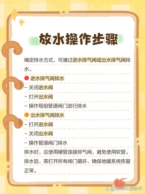 自己家地热放水可按以下方法操作:根据设备情况选取操作方式若家中有小背篓:小背篓通常连接在地暖管路上,可作为排水点使用。关闭地暖系统总阀门后,将小背篓下方的排水口打开(部分需用工具拧开),用容器接住排出的水。排水时观察水流颜色,若初期排出浑浊水,需持续排放至水流清澈为止。