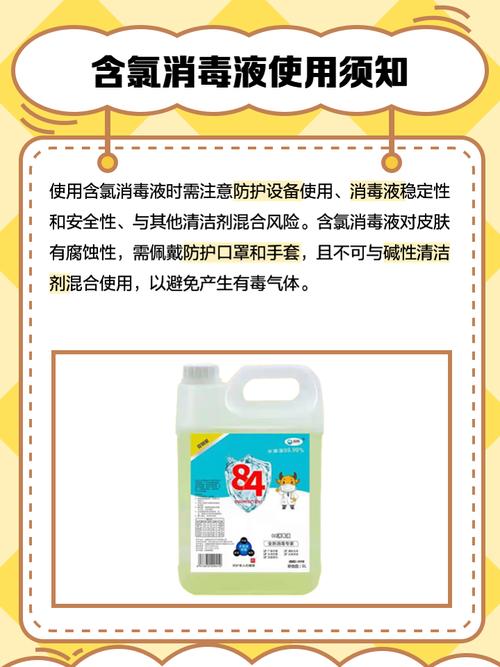 例如配1升消毒水,需加原消毒液约16毫升(因原浓度4300mg/L低于500mg/L,实际需浓缩,若场景需更低浓度则稀释,此处假设为常见浓缩型调整) 操作:将原消毒液按比例加入水中,搅拌均匀后擦拭或喷洒,作用30分钟后用清水擦净。