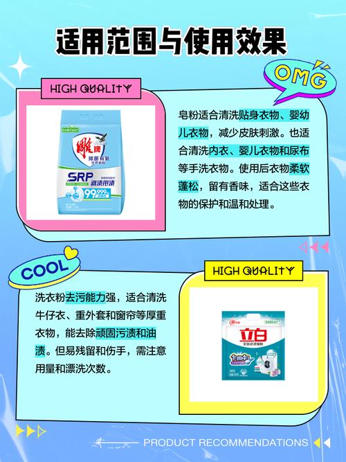 〖Six〗、首先,肥皂粉的主要成分是可再生的植物油脂,这使得它在使用时对皮肤的刺激较小,因此非常适合清洗内衣等贴身衣物,以及婴儿衣物。而洗衣粉则主要由石油提取物制成,这些成分可能会对皮肤造成一定程度的刺激,因此它更适合用于清洗外套、牛仔裤等较为耐磨的衣物。其次,肥皂粉和洗衣粉的适用性也有所不同。