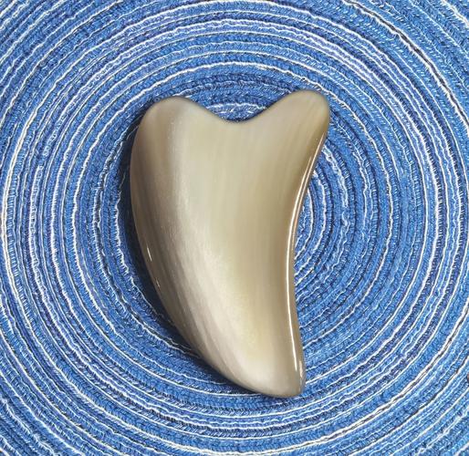〖One〗、水牛角刮痧板天然水牛角质地温润,含角质蛋白成分,具有天然抗菌性,适合敏感肌或角质层较薄的人群。其弧度设计贴合面部轮廓(如颧骨、下颌线),刮拭时舒适度高。建议选取厚度≥3毫米的型号,避免薄款因压力集中导致皮肤泛红;使用后需用清水冲洗并擦干,防止开裂。