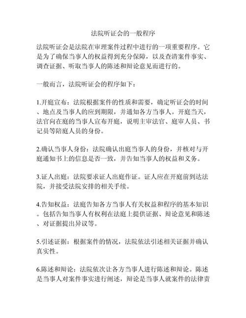 〖One〗、在民事再审程序中,启动听证会是一个重要的步骤,它代表着法院对案件进行再次审理的正式开启。听证会的启动意义听证会的召开意味着法院对案件中可能存在的疑问或争议进行更为深入的审查。这通常发生在法院认为原判决可能存在重大瑕疵或新的证据出现时。通过听证会,法院旨在确保案件的公正审理,并据此作出正确的裁判。