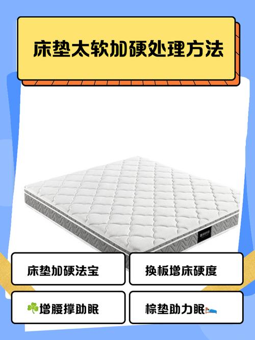 〖Five〗、如果床垫太软,想要变硬一点,可以采取以下几种方法:铺棕垫:可以在床垫上铺一层棕垫,棕垫质地较硬,能够有效增加床垫的硬度。使用凉席:如果家里有凉席,也可以将其铺在床垫上,同样能起到一定的硬化效果。铺木板:找到与床垫相同大小的木板覆盖在床垫上,这样可以显著提升床垫的硬度。