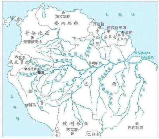 亚马逊河从秘鲁安第斯山脉源头发源,一路向东南流经巴西,最后注入大西洋。亚马逊河在巴西上游形成的由河流和沿岸沼泽、湖泊等组成的复杂水系叫做“亚马逊流域”,是世界上最大的流域之一。亚马逊流域内的地理环境非常丰富,包括雨林、沼泽、湖泊、河流等多种生态系统。