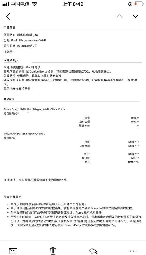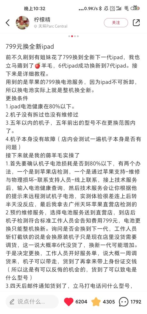 元“白嫖”iPad的真相并非真正免费:799元“白嫖”iPad的传闻源于苹果的售后服务政策。当iPad电池容量低于原始容量的80%且在Apple Care+服务计划保障范围内时,用户可免费获得电池服务。