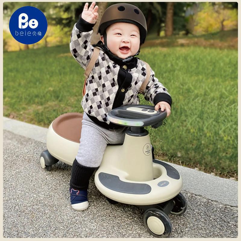 〖One〗、品牌推荐 贝易皇室扭扭车稳定性:加大加宽后轮和双三角结构,配合前悬浮双轮设计,适应多种路面。亲子共乘:可坐区域宽达46cm,妈妈与宝宝或两个孩子可同时乘坐,提升平衡训练效果。趣味功能:车把配备彩虹氛围声光效果,按下歌曲按钮可播放20首中英双语早教歌曲,潜移默化促进语言学习。