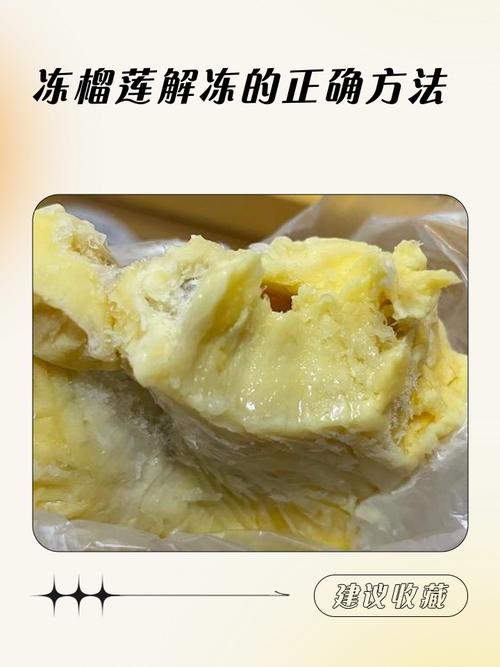 〖Four〗、正确解冻冻榴莲可采用以下方法: 冷藏解冻法:将冻榴莲放入冰箱冷藏室,这种方式解冻较为缓慢,但能最大程度保留榴莲的口感和营养。一般放置数小时后,榴莲就能变软解冻。 常温解冻法:把冻榴莲从冷冻室取出,放在常温环境下自然解冻。