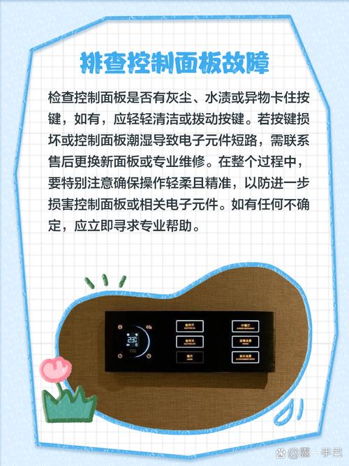 〖Two〗、洗衣机控制面板失灵的原因主要有以下几点:使用次数过多导致触点接触不良:洗衣机控制面板由于频繁使用,触点开关的动、静触点可能会因磨损或灰尘积累而接触不良,进而影响控制面板的正常功能。过热保护或断路:控制面板内部的电路可能因过热而触发保护机制,或者某些电路发生断路,导致控制面板失灵。