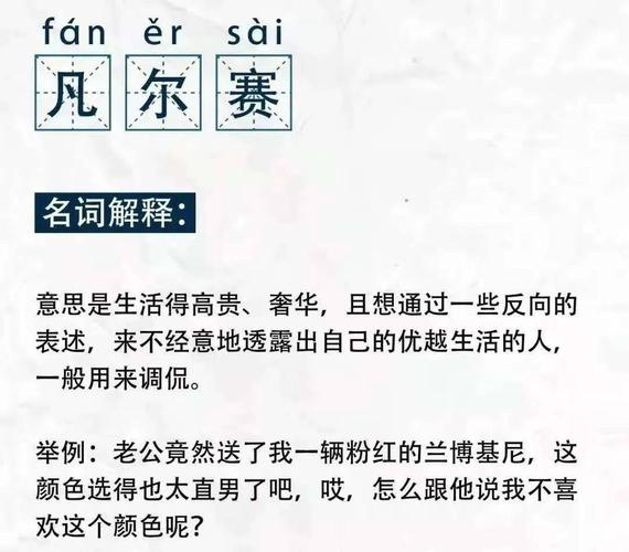 〖Two〗、该梗起源于“凡尔赛学”,也称作“凡学”,其创始人是网友小奶球。小奶球注意到这种现象,起初是因为朋友对她的吐槽,提及有人在社交媒体上不断描述自己享受的高端生活,包括高档酒店、奢侈品和红酒,而这种描述中透露出一种淡淡的优越感。
