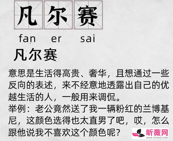 〖One〗、凡尔赛文学是指一种通过特定表述方式不经意间透露自己优越生活的调侃用语。出处:凡尔赛最初来源于日本漫画《凡尔赛玫瑰》,该漫画以法国大革命为背景,主要讲述路易十六妻子的上流生活故事,充满了贵族气息。然而,最近凡尔赛文学的流行则与一位名叫蒙淇淇的博主有关。