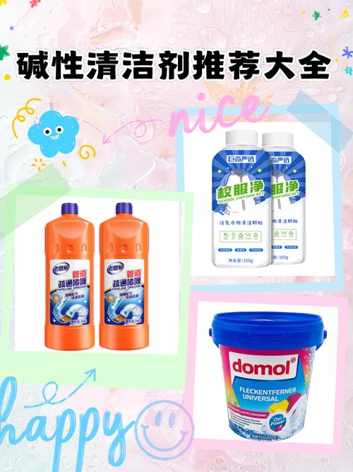 小苏打清洁剂:小苏打是一种碱性物质,常用于家庭清洁。它可以用来清洁各种表面,包括玻璃、不锈钢、陶瓷等。小苏打清洁剂可以有效地去除污渍和异味。氨水清洁剂:氨水也是一种碱性清洁剂,主要用于清洁玻璃和不锈钢表面。它能够去除污渍和残留物,使这些表面恢复光泽。