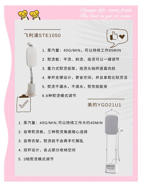 〖Five〗、两者在外观和质量上均表现优异,可根据个人喜好选取。功能选取:熨烫功能:基础且必备。清洗和加湿功能:根据需求选取,增加功能会提升费用。多档位蒸汽调节:使熨衣过程更轻松自如,推荐选购具有此功能的挂烫机。蒸汽管道:纤维编织软管:适用于小蒸汽压力的挂烫机,防烫、耐高温。