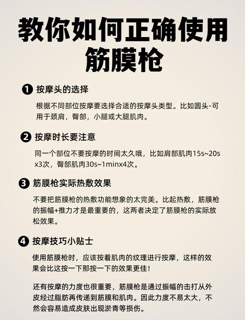 〖Five〗、筋膜枪如果使用不当或选购不专业产品,确实可能存在副作用。以下是筋膜枪可能产生的三大危害弊端:易损伤关节、骨骼:使用筋膜枪时,如果不小心击打到骨骼或关节,尤其是使用了金属按摩头,可能会造成严重的伤害。