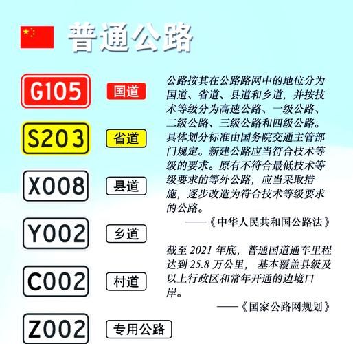 〖Five〗、道路编号的区分涉及多种标准,具体如下: 国道的编号以字母“G”开头,后接三位数字。其中,首位数字1代表以北京为中心的放射状国道,2代表南北向国道,3代表东西向国道。 省道以字母“S”开头,亦配备三位数字。