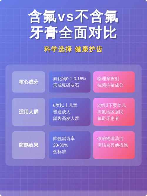 〖Four〗、不含氟牙膏虽无防龋特效,但安全性更高,适合对氟化物敏感或特殊需求人群。最终选取需权衡防龋需求与安全风险,在专业指导下科学使用。