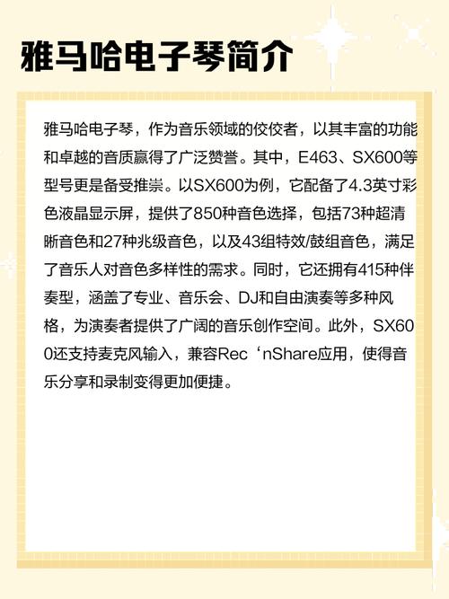 对于初学者来说,电子琴可以作为钢琴的替代品进行学习。以下是具体原因:功能丰富:电子琴体积小、便于携带,能模仿多种乐器的声音,还能随时调整音量,避免打扰他人,这对于初学者来说是一个很好的起点。满足练习需求:电子琴在练习曲目和音色表现上,已经能够满足大部分人的需求。