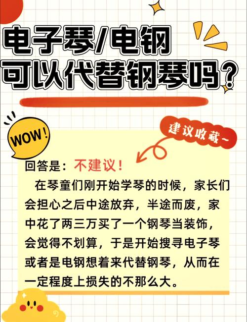 〖One〗、可以用电钢琴代替钢琴作为入门选取,但需根据孩子的学习目标和家庭需求综合考量。以下从多个维度分析两者的差异及适用场景:电钢琴作为替代的合理性费用优势显著 钢琴费用普遍在1万至2万元以上,而电钢琴入门款仅需3000至6000元,适合预算有限的家庭。若孩子未来放弃学琴,电钢琴的折旧损失更低。