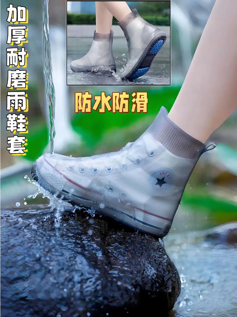 〖Three〗、防雨鞋套还是比较好用的,在雨天和雪天穿着可以保护鞋子避免打湿。它与传统的雨鞋不同,它更轻巧,更易于携带,没有传统雨鞋比较笨重的缺点。只需要将雨鞋套直接套在鞋的外侧,可以达到防水防泥的目的,更加美观,而且无需换鞋。而与一次性塑料鞋套相比,雨鞋套可以重复使用,清洁和总结也很方便。