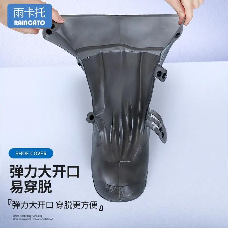 〖Five〗、雨鞋套具有很好的防水效果,是雨天出行的理想选取。雨鞋套的主要功能是防水。在下雨天,它能够有效保护鞋子不被雨水浸湿,避免鞋子因雨水而受损或弄脏。此外,雨鞋套的材质通常轻便、柔软,穿戴起来非常舒适。它们的设计考虑了方便穿戴和携带的特点,便于在出行时随时穿上或收纳。