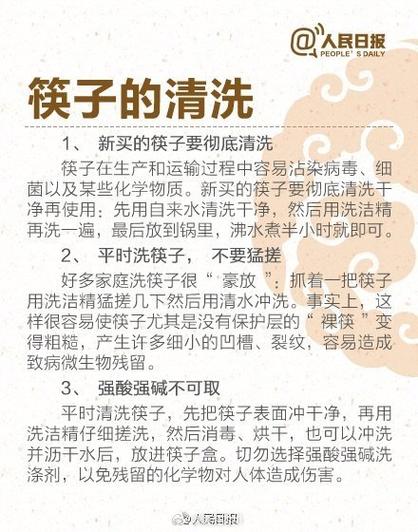 〖Five〗、是。筷子在生产和运输过程中很容易被病毒、细菌和某些化学物质污染。可以先用自来水洗,再用洗洁精洗,最后放入锅中煮半小时。