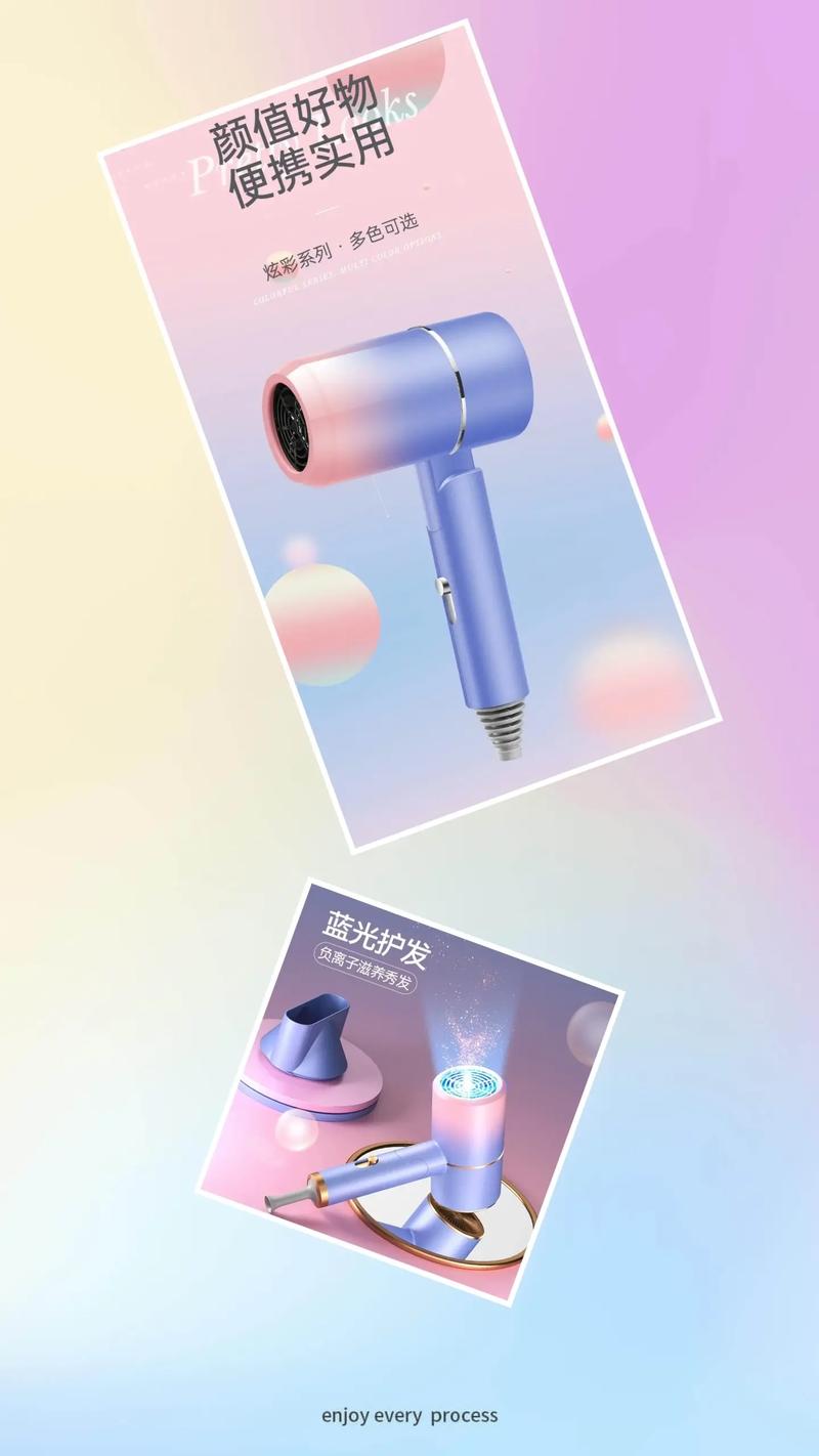 〖One〗、有了负离子吹风机的帮助,我们在梳理头发时会更加轻松,不易使头发因静电而变形弯曲。当我们使用蓝光吹风机时,其主要的功能是快速吹干头发。吹风机在工作时会发热,蓝光的作用可以更快地散发热量,从而更有效地吹干头发。对于忙碌的现代人来说,这无疑是一个很大的优势。