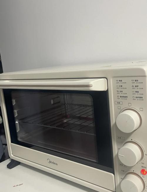 在首次使用烤箱时,需先将烤箱内的配件全部取出,使用清水洗净后放置一旁。随后,将烤箱门开至半开状态,将温度调节至比较高,并选取上下管同时加热的功能。将时间旋钮先调至最大值,再回调至零,最后重新设定到15分钟。