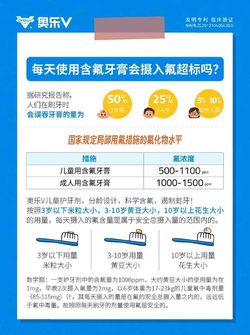 儿童牙膏的选取是一个需要综合考虑多个因素的决策过程,旨在确保孩子的口腔健康得到最佳保护,同时培养他们良好的刷牙习惯。以下是一些关键的考虑因素:含氟量:氟化物是预防龋齿的关键成分,它能帮助强化牙齿表面,抵抗酸性物质的侵蚀。