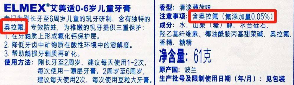 〖One〗、使用含氟牙膏好。含氟牙膏可以起到非常好的防龋效用,但不同年龄段儿童在使用含氟牙膏时,牙膏的含氟浓度和用量有不同讲究。2—5岁可用0.05%含氟量牙膏、6—11岁可用0.1%含氟量牙膏、12岁以上可用0.15%含氟量牙膏。