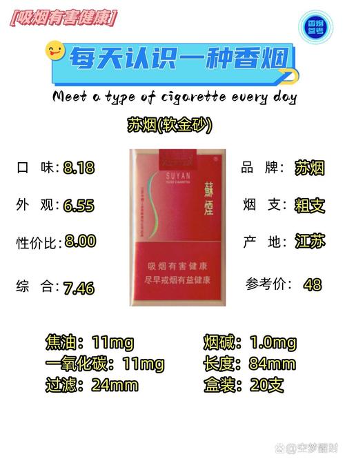 图中展示的是苏烟(软金砂)的费用,每包售价为45元。此外,还有一种红色软包的苏烟,名为五星红杉树,其费用相对较低,每包20元。苏烟系列中,软金砂以其独特的口感和品质受到许多烟民的喜爱。每包45元的费用对于这一级别的香烟来说,较为适中,适合中等消费水平的烟民。