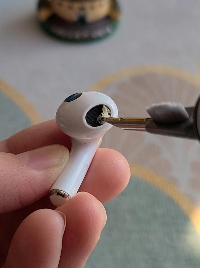 〖Three〗、而且处理这种 “ 湿垃圾 ” ,单靠工具去掏是整不干净的。博主直接把纯酒精( 容易蒸发,不会伤害耳机 )倒进去,再搅和搅和。画面逐渐重口起来 ▼ 遗憾的是,尽管经历了一番猛如虎的操作,最后耳机还是泛着一丝黄光,边边角角仍旧残存着一些污垢,建议还是重新买一对吧。