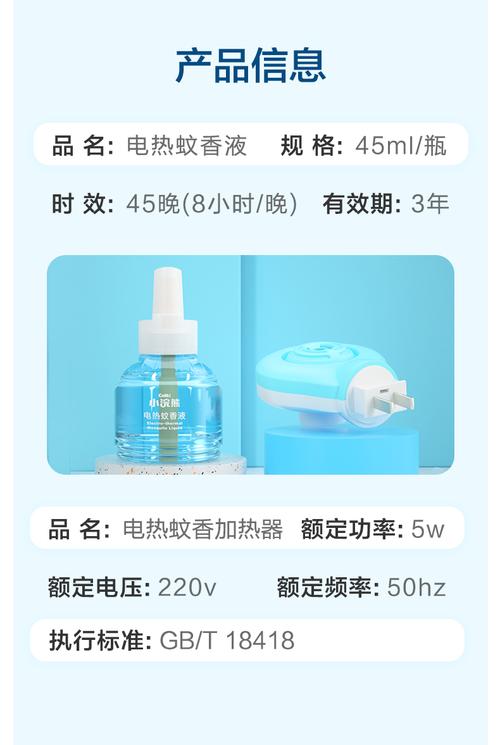 〖Five〗、电驱蚊液可以插一晚上。蚊香液中含有的拟除虫菊酯类、氯仿、苯、乙醚等化学成分,在插电后经电加热器的作用下,会逐渐开始升温发热,等达到一定的温度下,便会散发出能够驱除蚊虫的气味,是新式家用卫生杀虫用品。液体蚊香:使用轻便,无须天天换药。