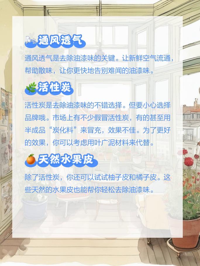 答案:许多物品都可以帮助去除油漆味。常见的方法包括使用活性炭、开窗通风、植物净化等。详细解释: 活性炭吸附法 活性炭因其特殊的吸附性能,被广泛用于去除异味。活性炭能够吸附油漆中的有害气体和异味,从而净化空气。只需要将活性炭放置在刚刷了油漆的地方,一段时间后就可见效果。