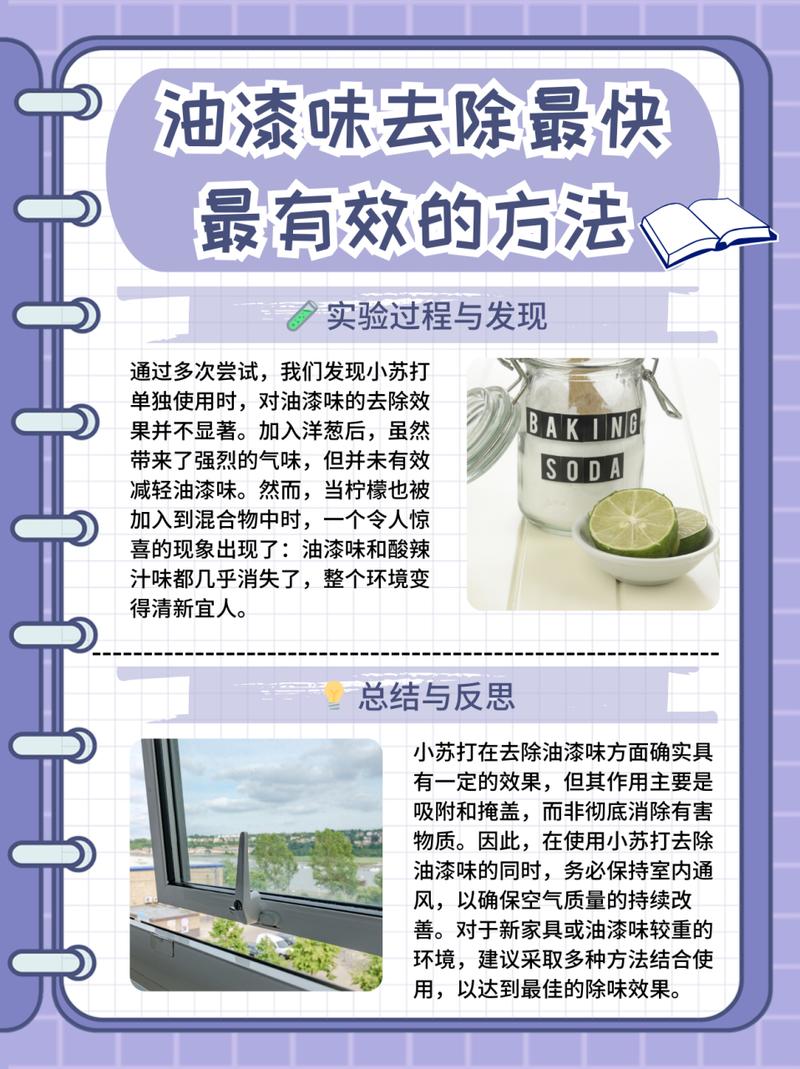 〖Three〗、开窗通风:这是最简单也最有效的方法之一。无论是新家具还是新装修的房屋,通过开窗通风可以迅速减轻油漆味。 用醋擦拭家具:将抹布浸泡在醋中,然后用来擦拭家具,可以有效去除油漆味。 用柠檬酸或醋水:将柠檬酸或醋与水混合,用其湿润棉球擦拭家具表面,也能迅速去除油漆味。