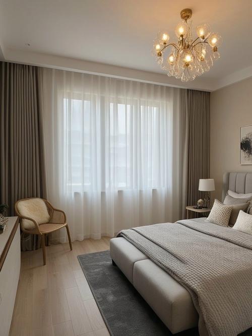简约风格的轻薄窗帘 对于现代简约风格的房间,选取简洁大方的轻薄窗帘非常合适。这类窗帘设计简洁,通常采用纯色或简单的图案,能够营造出一种轻松、明亮的氛围。此外,轻薄窗帘对于室内采光的影响较小,可以让房间更加通透。