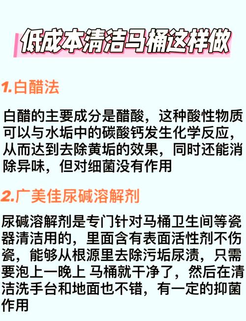 〖Three〗、浴室洁具黄斑污渍祛除的妙招包括以下几点:马桶:使用洁厕剂喷淋马桶内部,特别是马桶内缘出水口处,比较好使用独特鸭嘴头设计的洁厕剂深入清洁。刷洗马桶座和其他缝隙,注意马桶外侧底座也要喷淋刷洗,并用水冲洗干净,最后用干净的布擦干。