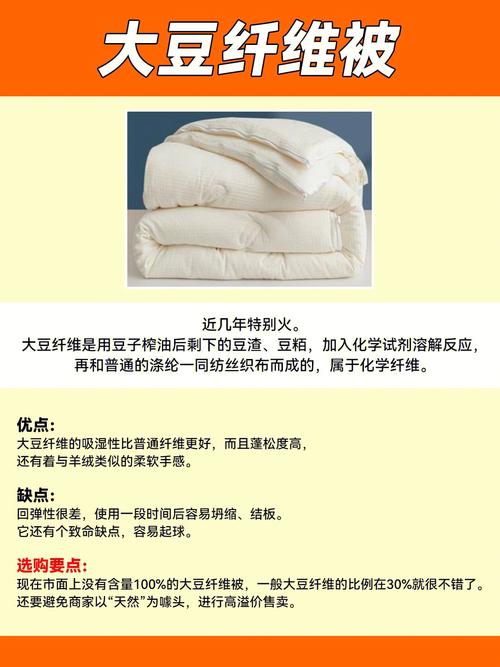 〖One〗、羽绒被:轻盈保暖,适合怕热者,羽绒纤维的透气性有助于健康睡眠。 蚕丝被:舒适透气,适合对皮肤敏感的人,注意区分桑蚕丝和柞蚕丝,优选长丝,定位方式以手工定点为佳。 大豆纤维被:环保轻便,但需要干洗,混纺能降低成本,提高舒适性。挑选时要考虑地理位置和季节需求。