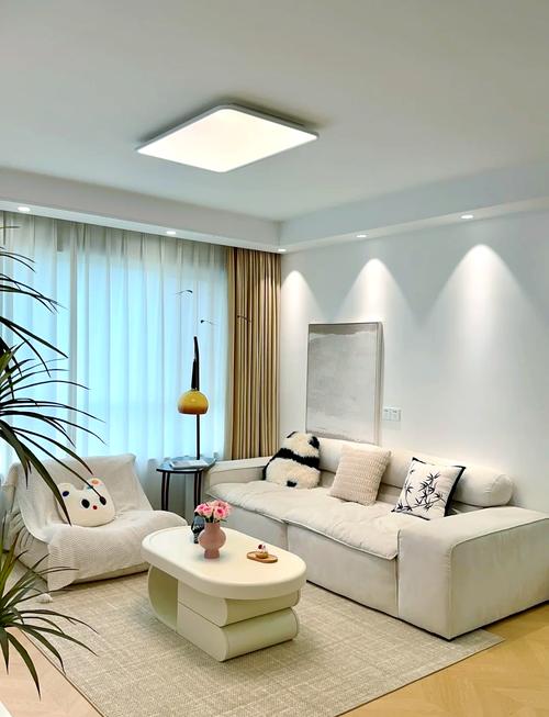〖One〗、较大面积:适合选取一些大的水晶吊灯或欧式铜质吊灯。材质方面: 吊灯:常见的有金属、水晶、玻璃等材质,适合营造豪华氛围。 吸顶灯:亚克力、金属、玻璃等材质较为常见,适合现代简约风格。在选取灯具时,还应考虑其光线柔和度和装饰性,以确保客厅既明亮又美观。