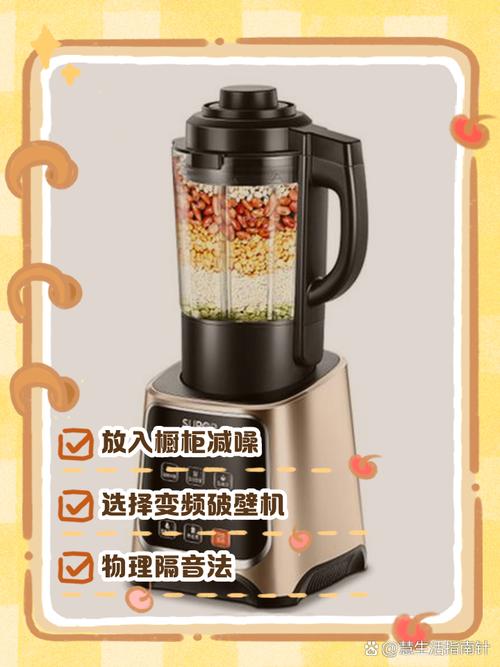 〖Two〗、要让破壁机减小声音,可以采取以下几种方法:使用隔音棉:购买并裁剪隔音棉:按照家中破壁机的尺寸购买隔音棉,并进行裁剪。套在破壁机上:将裁剪好的隔音棉套在破壁机上,可以有效降低20~30分贝的声音。