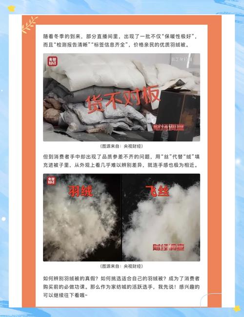 〖One〗、摸:通过触摸和捏压来感受羽绒被的手感。如果手感柔软且能触摸到完整的小毛片,说明是正宗产品。若手感粗糙或没有小毛片,则可能是次品或假品。拍:用力拍打被子,观察其粉尘溢出情况。粉尘溢出量越少,说明羽绒被的质量越好。揉:用双手揉搓被子表面,注意是否有毛绒钻出。