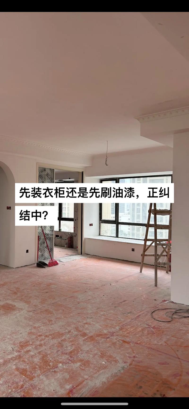 〖Five〗、从当下的一些装修师傅们实践出来的真理也都是能够看出,一般来说需要先刷墙,然后再安装定制衣柜。因为我们需要把墙面先刮一层腻子,等到木工来了之后,再安装柜子,小编觉得这样的顺序才比较合理。装柜子之后对墙面造成的一些刮蹭,我们可以进行第2次刮腻子。