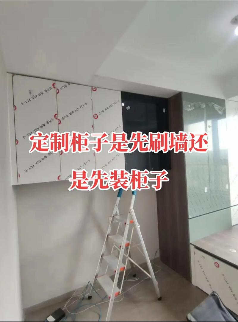 如果比较赶工期,可以选取先装柜子,再刷乳胶漆。如果不赶工期,可以在刷了乳胶漆之后再安装柜子,或者可以选取同步进行,所以并不是绝对的,要灵活处理。工期不紧张 而且业主对于美观的要求比较高。这种情况下就可以选取先装柜子,然后再刷乳胶漆。