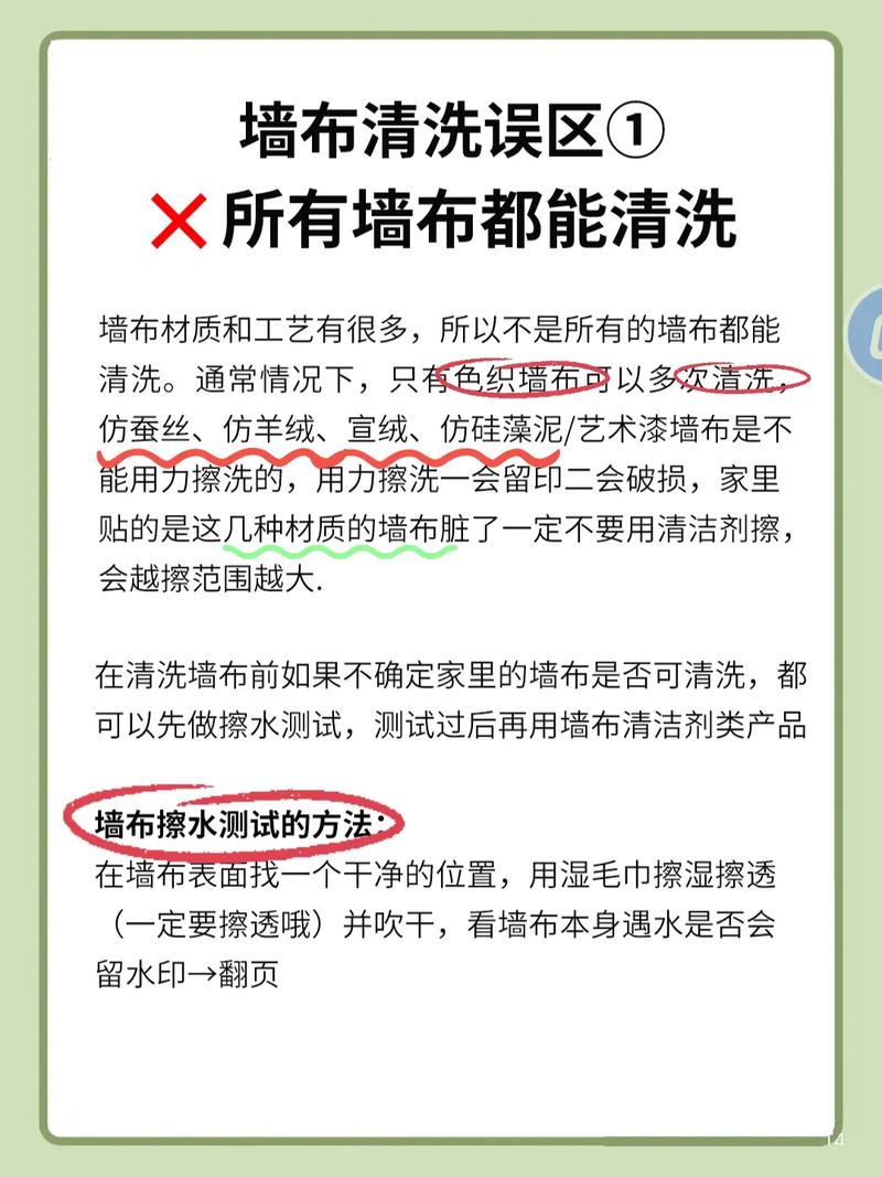 〖One〗、使用稀释清洁剂溶液:步骤:将清洁剂与水按一定比例稀释,用软抹布蘸取稀释后的溶液,拧干后轻轻擦拭墙布表面。这种方法适用于去除一般污渍。利用中性洗洁剂或肥皂水:步骤:拿白色湿毛巾沾取中性洗洁剂或肥皂水,轻轻擦拭墙布上的污渍。这种方法温和且有效,适用于多种污渍类型。
