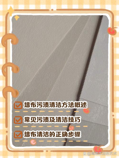 〖One〗、墙布上的污渍可以通过以下几种方法去除:清洁剂去除法:步骤:将适量的清洁剂与温水混合,用毛巾蘸取后轻轻擦拭污渍,再用湿毛巾清除清洁剂残留。注意:擦拭时需轻柔,避免损坏墙布。
