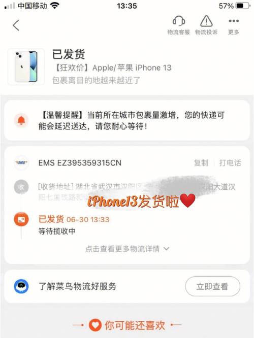 〖Two〗、购买苹果手机时,一般在苹果官方网站下单后,2『3』天左右可以到货。对于现货商品,24小时内即可发货,而预售商品则需30天内发货。发货地通常为上海或深圳,发货后会有通知,但到达时间因地区而异。