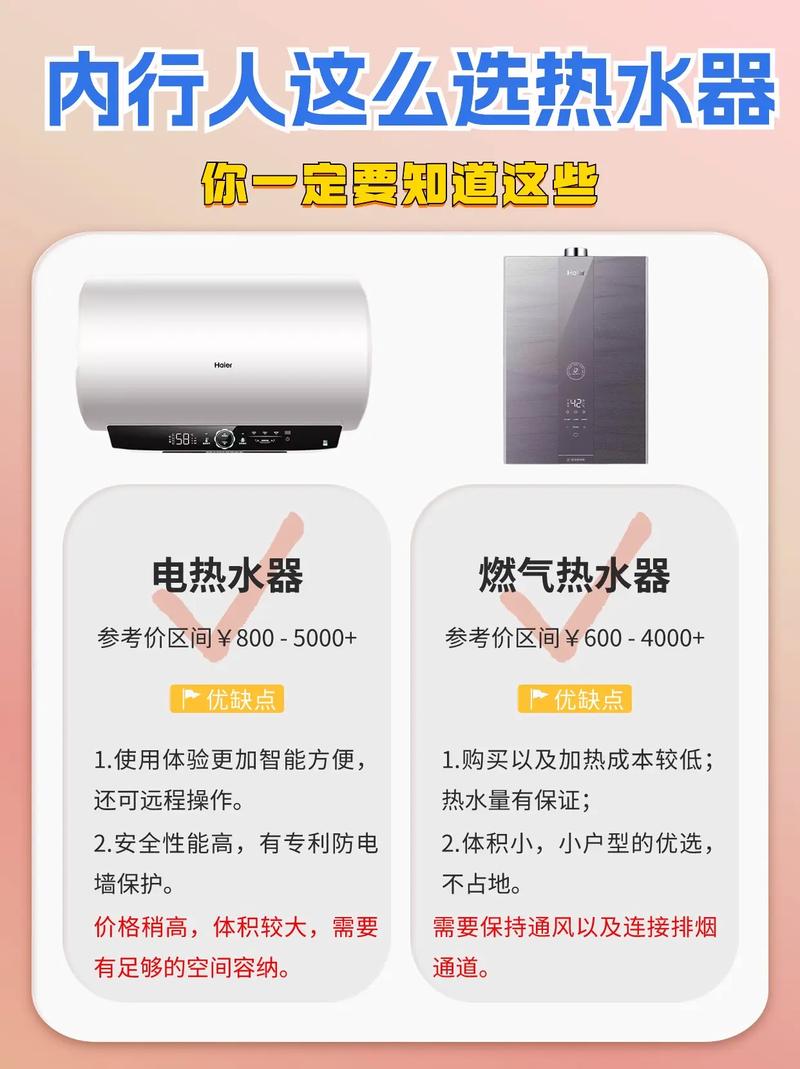〖Three〗、类型选取:要依据自身需求和家庭情况来挑选。燃气热水器加热快、使用成本适中,但需注意通风;电热水器安装方便,不受燃气限制,不过加热速度可能较慢;空气能热水器节能高效,但费用相对较高,且对安装环境有一定要求。 容量适配:考虑家庭成员数量和用水习惯。
